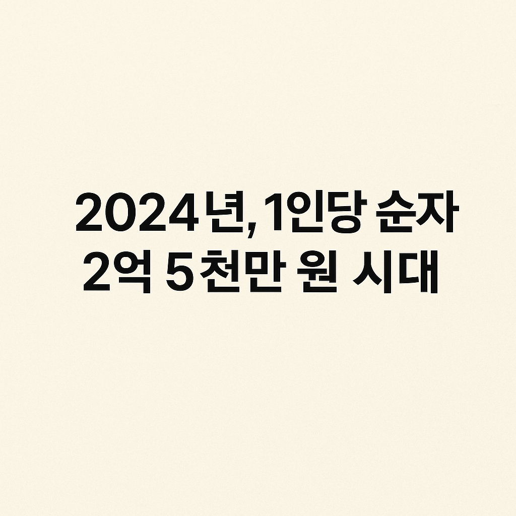 그런데 2024년 통계청 발표에 따르면 1인당 순자산은 2억 5,251만 원. 무려 작년보다 3.3% 증가했다고 합니다.