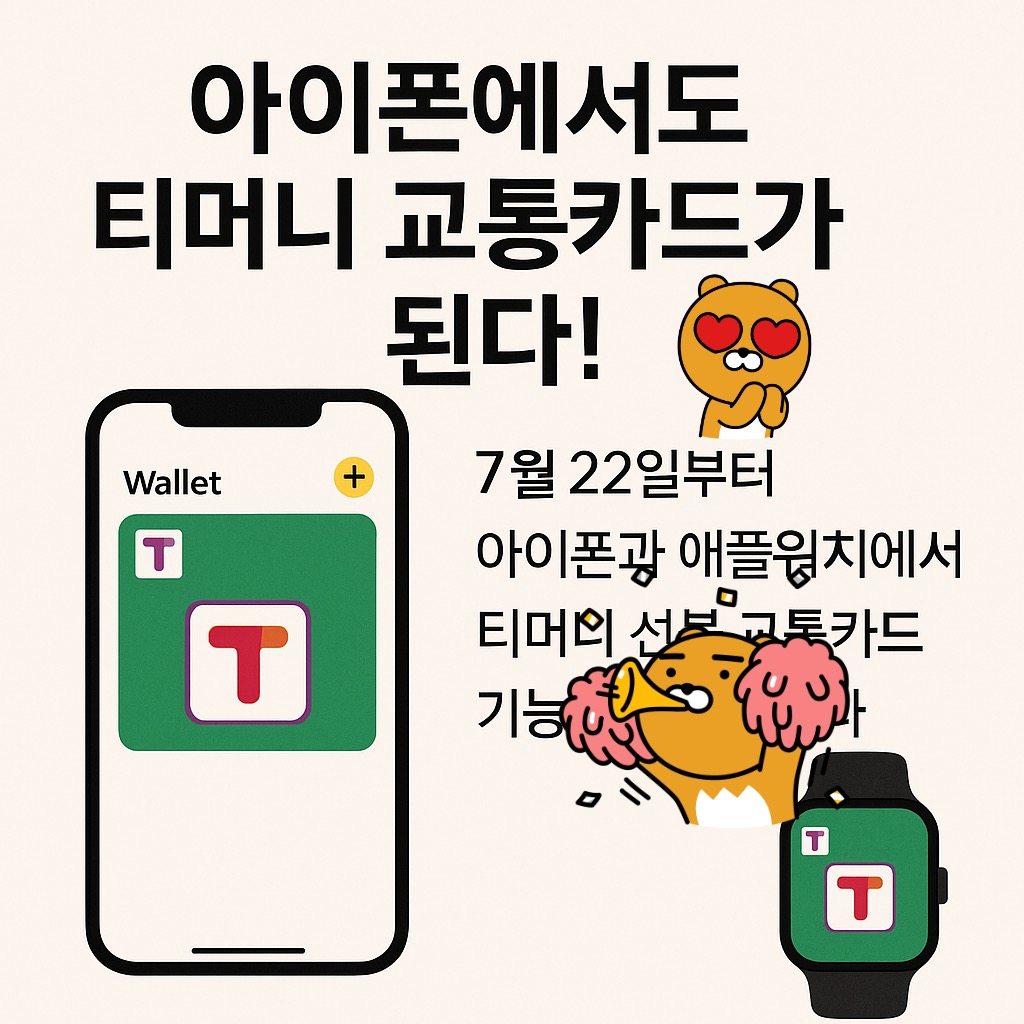 ㅇ 2025년 7월 22일부터 아이폰·애플워치에서 티머니 선불 교통카드 기능 지원